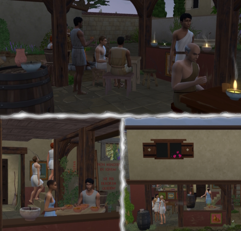Der Centurio sah das wahrscheinlich anders, doch seine Untergebenen nicht. Sie fanden recht zügig den Weg ins Thermopolium – was eventuell auf Justinas Kappe ging, denn sie hatte an der Stadtmauer einen Werbespruch – nebst Wegbeschreibung – hinterlassen, der den Reisenden mitteilte, ganz in der Nähe sei ein Thermopolium, in dem man sich gut und günstig laben kann.